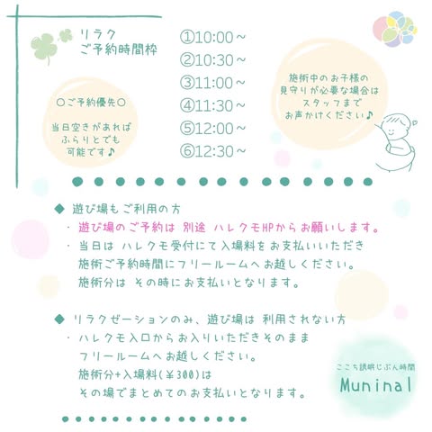 ※遊び場利用の方は別途ハレクモ入場料とHPから遊び場の予約が必要