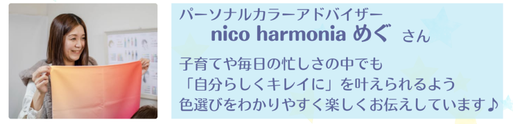 講師はパーソナルカラーアドバイザー「nico harmonia」のめぐさんです。