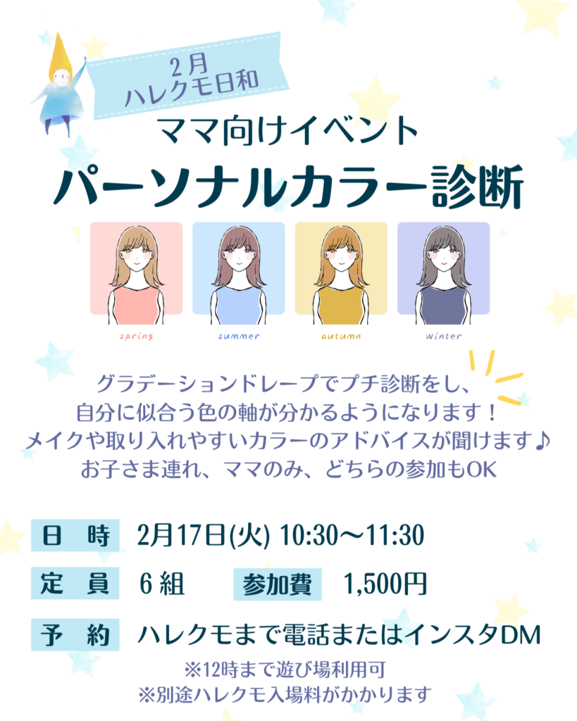 2月のハレクモ日和はママ向けイベント「パーソナルカラー診断」を開催します!